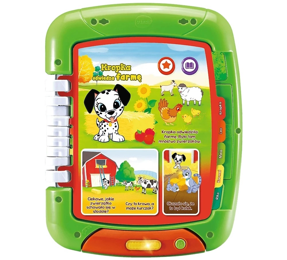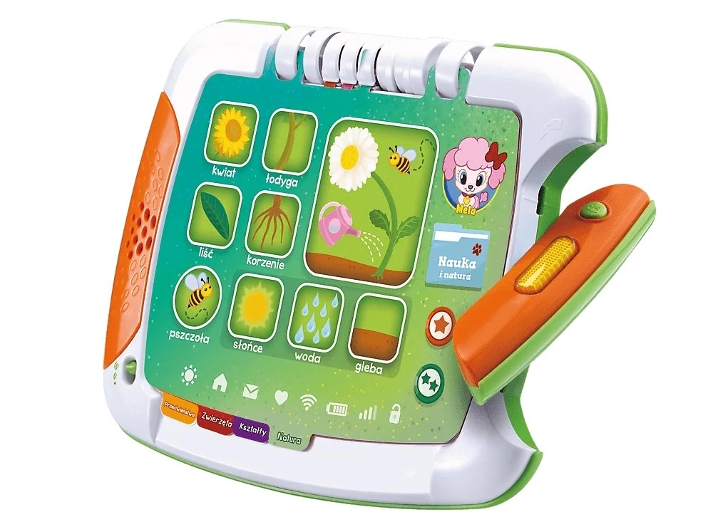 Tableta oferă peste 100 de fraze, curiozități, cântece și melodii, care dezvoltă vocabularul și stimulează curiozitatea. Copiii se familiarizează cu emoțiile, culorile, formele și animalele, toate în versiunea lingvistică poloneză – grozav pentru familiile vorbitoare de poloneză. Funcțiile practice, precum reglarea volumului și oprirea automată, sporesc confortul și siguranța utilizării.