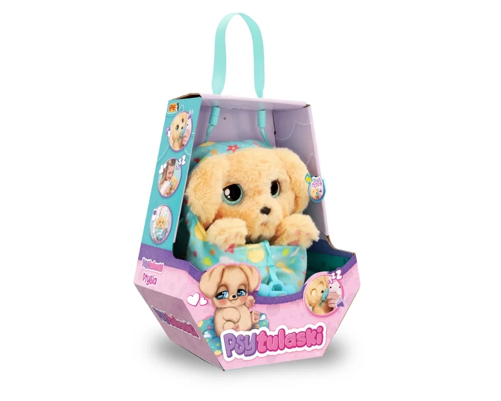 Labradorul de pluș interactiv Psytulaski oferă copiilor o experiență realistă de îngrijire a unui animal de companie. După introducerea suzetei în guriță, cățelul își închide ochii și „adoarme”, iar fără suzetă reacționează vesel prin sunete și își deschide ochii. Materialul foarte moale și execuția sigură sunt perfecte pentru îmbrățișări și joacă zilnică.