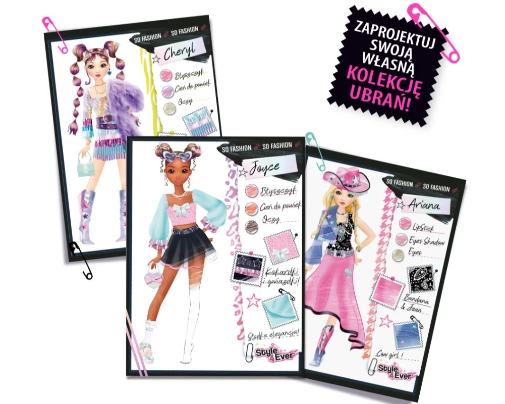 Șabloanele și autocolantele permit crearea unor look-uri complete, inclusiv accesorii – de la poșete la detalii pe rochii.