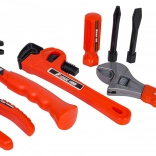 Ciocanul, cleștele, cheia franceză, șurubelnița cu biți și cheia reglabilă arată ca adevărate, dar sunt ușoare și sigure pentru mâinile copiilor.