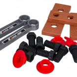 Șuruburile, piulițele și fâșiile cu orificii le permit copiilor să conecteze piese, să încerce construcții și să-și dezvolte coordonarea și gândirea logică.