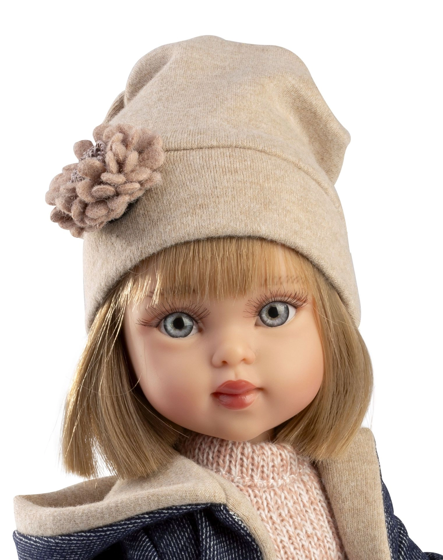 Această păpușă elegantă este creată pentru micile iubitoare de modă și povești. Are corp din vinil integral, brațe și picioare prinse pe articulații și poate sta singură atât în picioare, cât și așezată. Părul bogat tuns bob este „crescut” pe toată scalpul și poate fi ușor pieptănat și coafat.