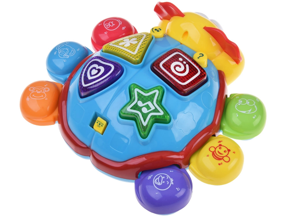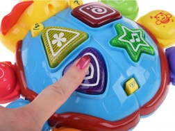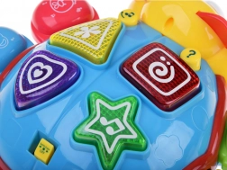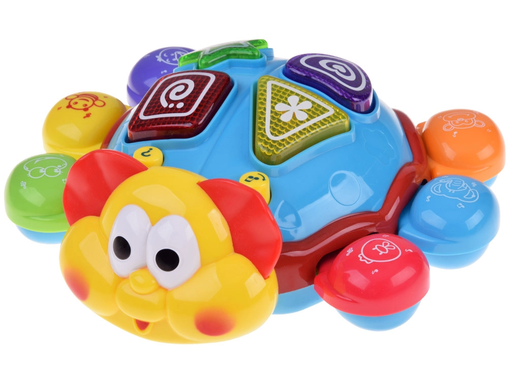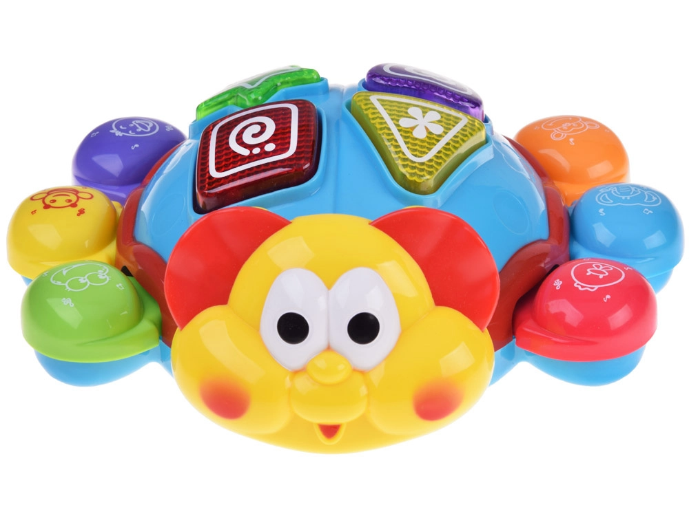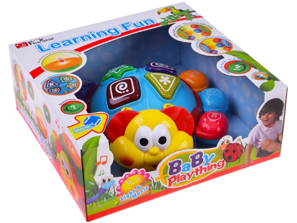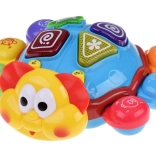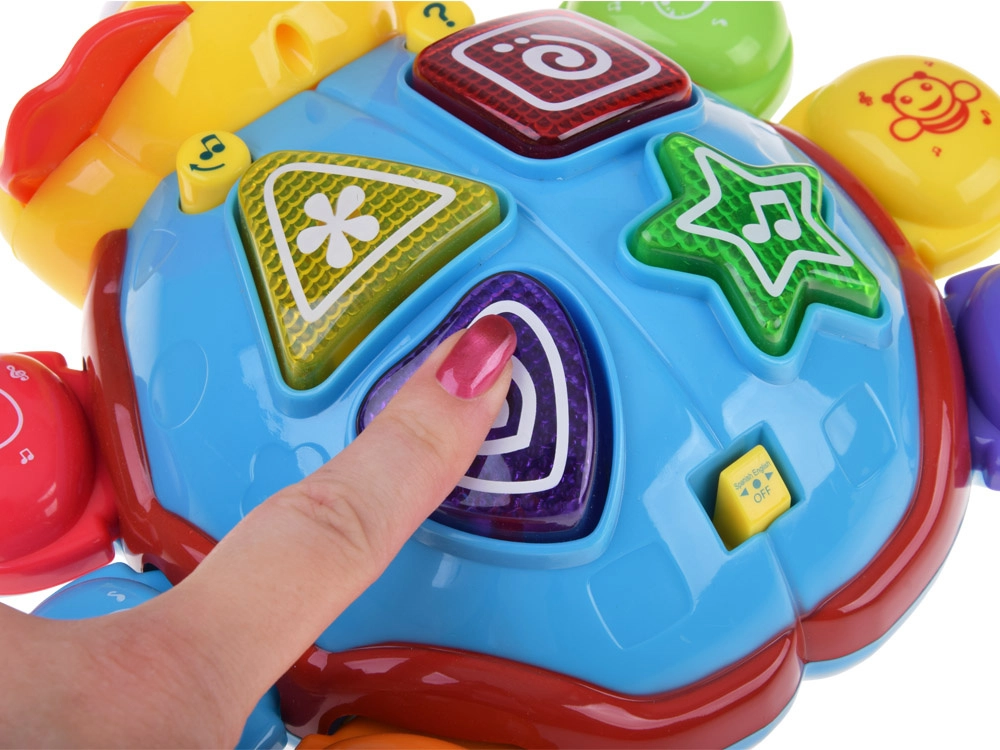 Gândăcel interactiv colorat îi motivează pe copii să se târască și să meargă de-a bușilea, redă melodii vesele, clipește cu luminițe și, datorită senzorului inteligent de obstacole, își schimbă direcția. Prin apăsarea butoanelor mari, copiii învață culorile, animalele și principiul cauză–efect. Jucărie ideală pentru distracție activă și dezvoltarea motricității fine.