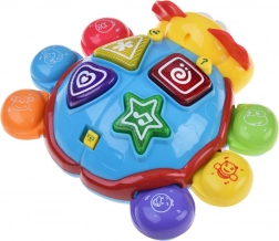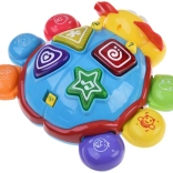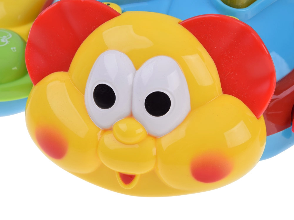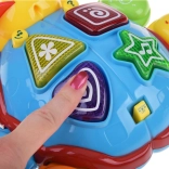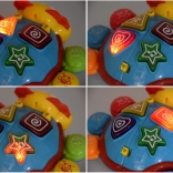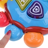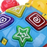 Butonul cu notă muzicală pornește melodii vesele însoțite de luminițe care clipesc, pentru stimulare senzorială și bucuria jocului.