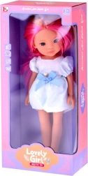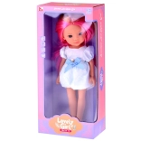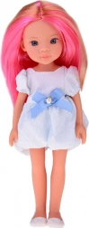 Eleganta rochie albă cu fundă albastră și detaliu cu efect perlat este completată de balerini albi. Trăsăturile realiste ale feței și ochii strălucitori o transformă într-o companionă fermecătoare pentru fiecare zi și într-o frumoasă decorațiune pentru camera copilului.