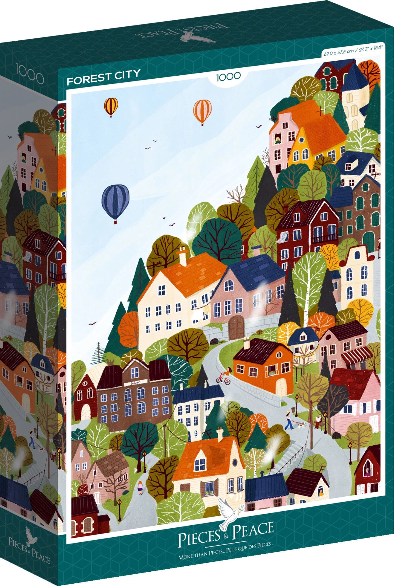 Descoperă farmecul naturii și al orașului într-o singură imagine. Puzzle-ul Orașul din pădure oferă o îmbinare armonioasă de culori și detalii, pe placul începătorilor și al pasionaților experimentați. Datorită execuției de calitate și pieselor tăiate cu precizie, asamblarea este fluentă și plăcută.