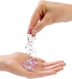 Slime-ul transparent și elastic se întinde ușor, se strânge și fixează sclipiciul. Ideal pentru joacă senzorială și relaxare – o textură sigură și distractivă pentru copii.