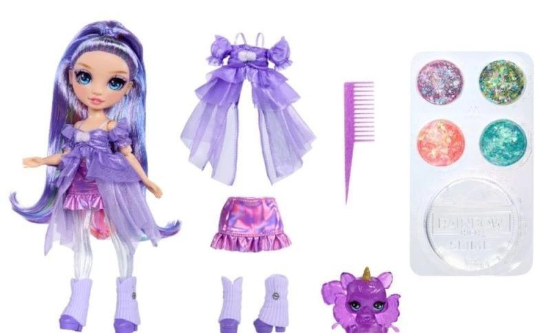 Această păpușă stilată, cu păr lung mov și o ținută îndrăzneață, oferă un mod complet nou de joacă. Amestecă slime cu sclipici colorat, umple cu el părțile transparente ale picioarelor și urmărește cum lookul lui Violet se schimbă instantaneu. Datorită articulațiilor, este ușor să poziționezi păpușa și să creezi scenarii de modă.
