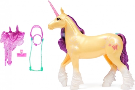 Descoperă magia lumii Unicorn Academy cu unicornul Leaf! Această figurină de aproximativ 24–28 cm, inspirată de serialul de pe NETFLIX, are un corn strălucitor, semne sidefate ale magiei plantelor, coamă și coadă colorate și zabrană și șa detașabile. Printr-o mișcare fină a capului, îi prinde viață personalitatea, iar copiii pot retrăi legătura magică a prieteniei cu călăreața Ava.