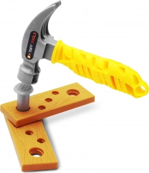 Ciocănel, clește, șurubelnițe și chei în mărime pentru copii, care susțin motricitatea fină și coordonarea mână–ochi.