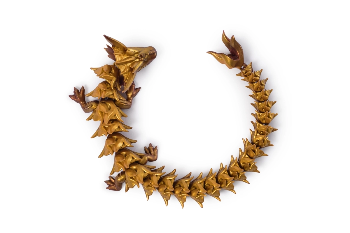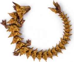 Solzi detaliați, suprafață metalică și segmente care permit îndoire fluidă, rulare în cerc și poziții spectaculoase.