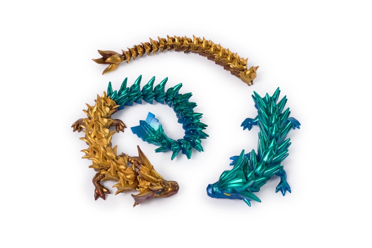 După deschidere te așteaptă una dintre surprize – fie un dragon flexibil mai mare, fie doi mai mici, gata pentru joacă și combinare imediată.