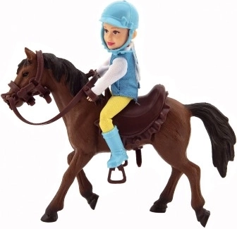 Toți micii iubitori de cai vor fi încântați de jocheul cu căluțul cu zăbală și șa. Jocheul trebuie să poarte ținută de echitație și cască. Coama și coada calului nu sunt pentru pieptănat. Fabricat din materiale de calitate și rezistente. Dimensiuni ambalaj: 23 x 23 x 9,5 cm. Potrivit pentru copii de la 3 ani.