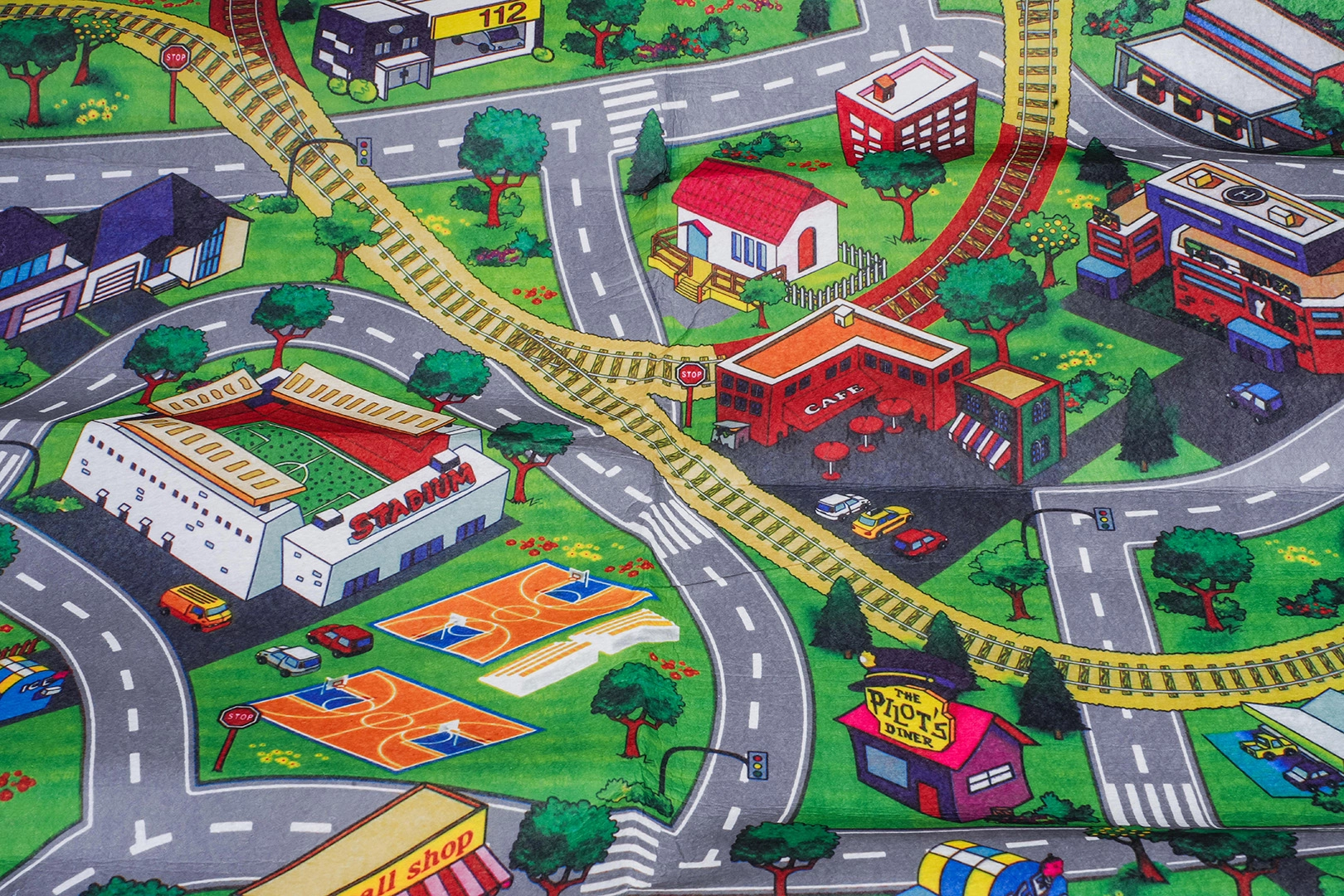 Covoraș de joacă cu drumuri și accesorii bogate