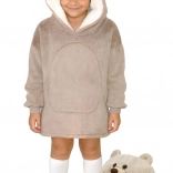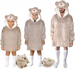 Pătură-hanorac cu glugă în stil ursuleț, drăguță și practică, pentru copii de 3–6 ani. Oferă sherpa fleece super moale la interior, strat exterior din flanel catifelat, croială oversize pentru confort maxim și un buzunar frontal mare pentru încălzirea mâinilor. Ideală pentru stat pe canapea, joacă și camping pe vreme mai răcoroasă.