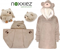 Pătura-hanorac călduroasă cu glugă Cozy Noxxiez, cu design de ursuleț, transformă relaxarea în confort pur. La interior încălzește sherpa fleece-ul pufos, iar la exterior încântă flanelul extra catifelat. Datorită croielii oversize nu trage nicăieri, nu restricționează mișcarea și se potrivește frumos copiilor de la 3 la 6 ani.