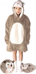 Această pătură-hanorac călduroasă COZY NOXXIEZ, în stil drăgălaș de arici, îmbină confortul unei pături cu practicitatea unui hanorac. Interiorul din sherpa fleece pufos și stratul exterior din flanel catifelat asigură că celor mici le va fi cald la TV, la joacă și în timpul odihnei.