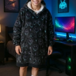Pătura hanorac cu glugă pentru copii îmbină confortul unei pături cu practicitatea unui hanorac pentru copiii de 7–12 ani. Oferă flanel super moale la exterior și fleece sherpa pufos la interior pentru căldură și confort maxime. Datorită buzunarului frontal uriaș și glugii mari, este ideală pentru relaxare pe canapea, joacă și camping. Imprimeul de gaming va încânta orice mic jucător.