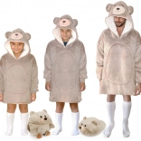 Pătură hanorac pentru TV, super confortabilă cu motiv de urs de la COZY NOXXIEZ te încălzește acasă și afară. Are glugă uriașă cu urechiușe, mare buzunar frontal pentru mâini și este realizată din flanel ultra moale și sherpa fleece călduros. Croiala oversize nu limitează mișcarea – ideală pe canapea, la lucru la PC, la camping și pentru serile răcoroase în grădină.