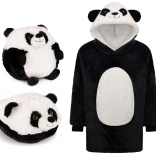 Bucură-te de căldură și confort oricând și oriunde. Acestă pătură-hanorac oversize, cu un design drăguț de panda, încălzește minunat la televizor, la citit, la lucru la calculator sau în momentele de relaxare în grădină. Interiorul este din sherpa fleece pufos, iar exteriorul din flanel mătăsos și catifelat – o combinație care oferă căldură instant și finețe maximă.