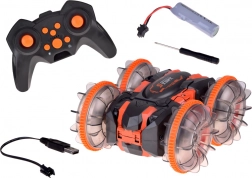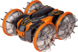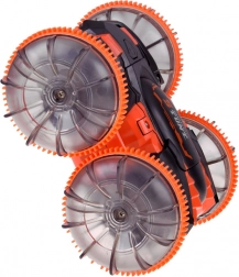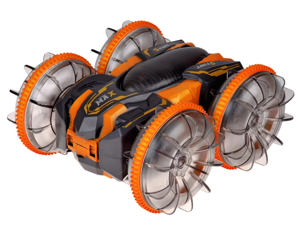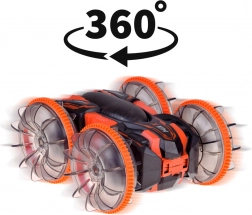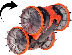 Descoperiți condusul plin de acțiune cu mașina RC cascador amfibie, care se descurcă pe iarbă, nisip, pavele și pe suprafața apei. Roțile mari transparente, cu profil pronunțat și iluminare LED, oferă fiecărei curse un efect spectaculos și aderență sigură. Datorită rotațiilor de 360°, mașina își continuă mersul chiar și după ce se întoarce pe cealaltă parte.