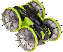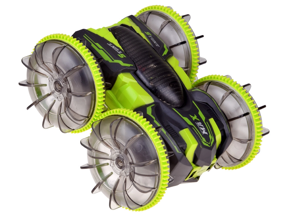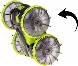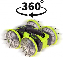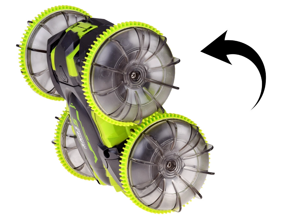Descoperiți adrenalina cu mașina RC cascador amfibie, care se descurcă pe iarbă, covor, gresie și pe apă. Roțile mari transparente, cu profil pronunțat și iluminare LED, asigură aderență excelentă și un aspect spectaculos în mers, chiar și după lăsarea serii. Datorită rotirii la 360°, continuă deplasarea chiar și după răsturnare.