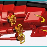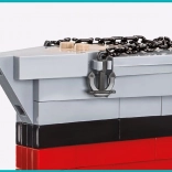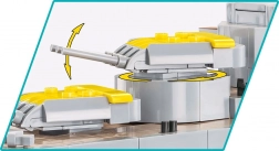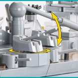 Nava oferă numeroase detalii funcționale: turele de artilerie rotative cu elevarea țevilor, elice și cârme mobile, punte și suprastructuri realiste. În pachet se găsesc un suport negru elegant și o plăcuță albă cu numele navei. Instrucțiunile intuitive, cu pictograme clare, ușurează construcția chiar și pentru constructorii mai puțin experimentați.