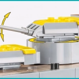 Turele de artilerie rotative cu țevi reglabile, elicele și cârmele mobile conferă modelului dinamism și interactivitate.