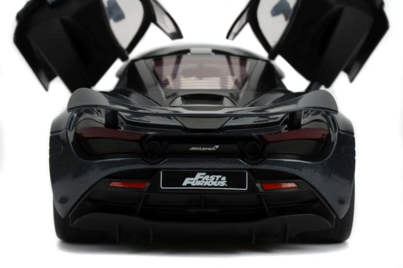 Acest model die-cast realizat în detaliu, McLAREN 720S inspirat de personajul Shaw din filmul Furios și iute, surprinde fidel liniile agresive, aerodinamica și caracterul sportiv al supermașinii reale. Componentele metalice combinate cu finisajul de calitate subliniază aspectul premium și durabilitatea îndelungată a modelului.