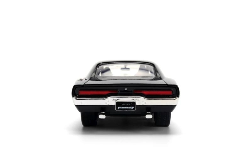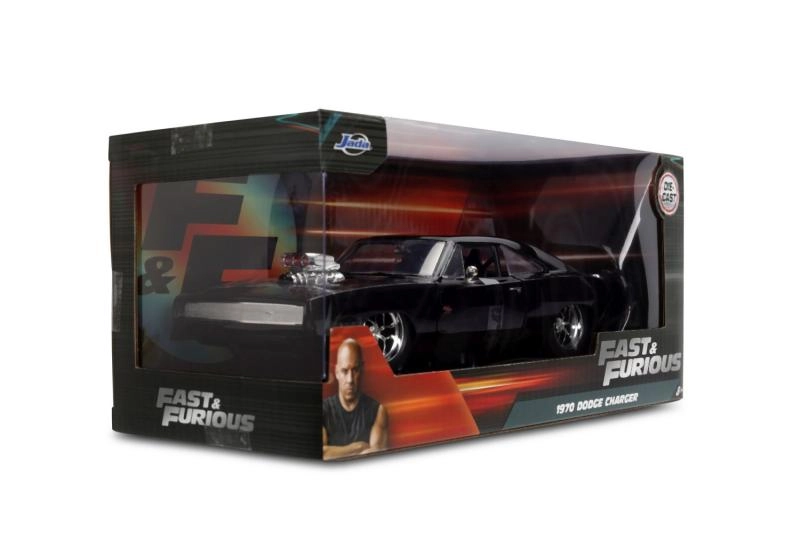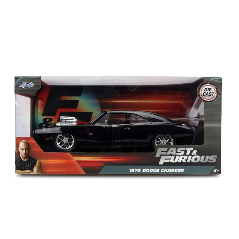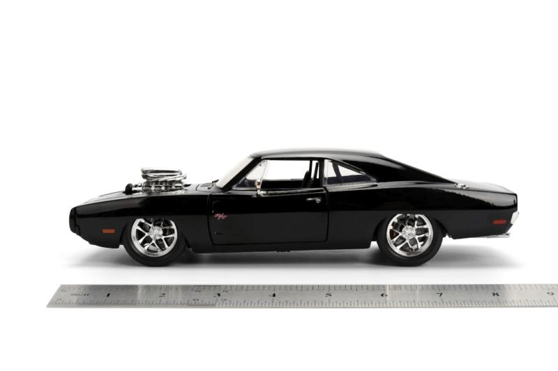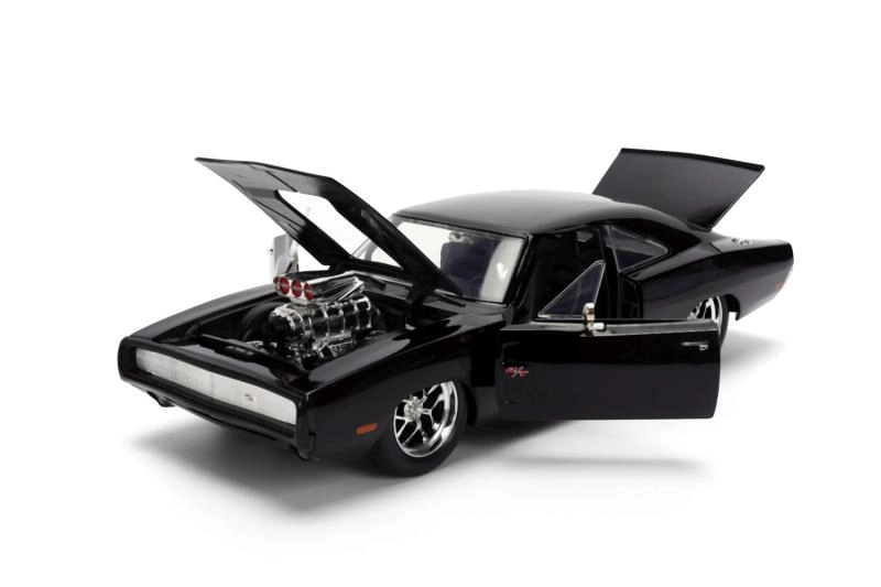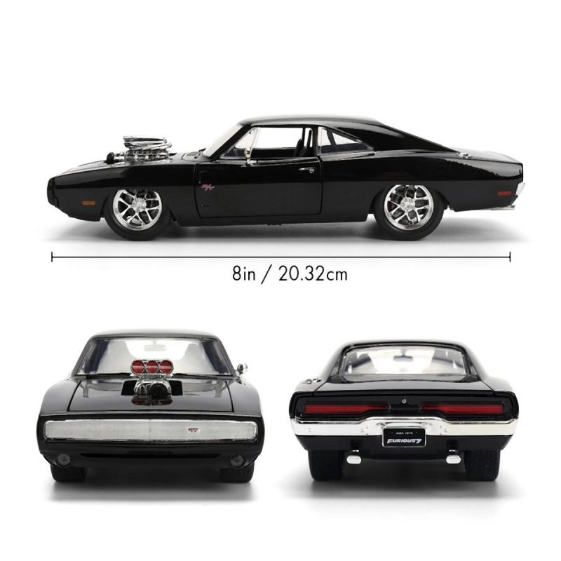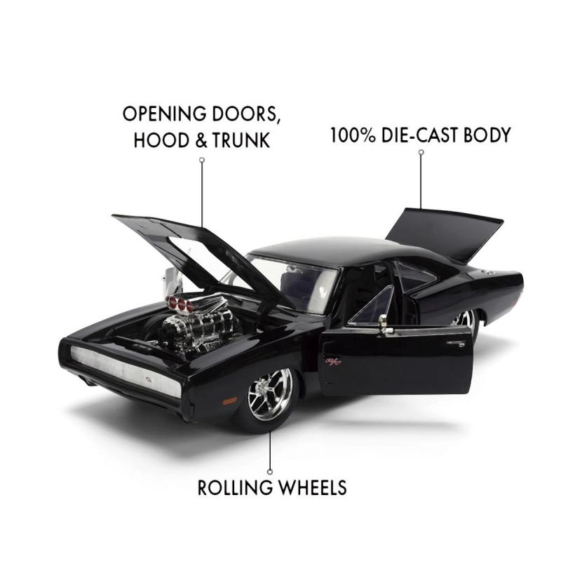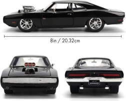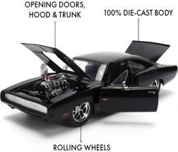 Modelul colecționabil iconic 1970 DODGE CHARGER din filmul Fast & Furious, la scara 1:24, îi va încânta atât pe fanii muscle car, cât și pe cei ai seriei. Oferă caroserie metalică, uși, capotă și portbagaj funcționale și detalii realiste, inclusiv compresorul proeminent de pe capotă. Lungimea modelului este de aproximativ 21 cm.