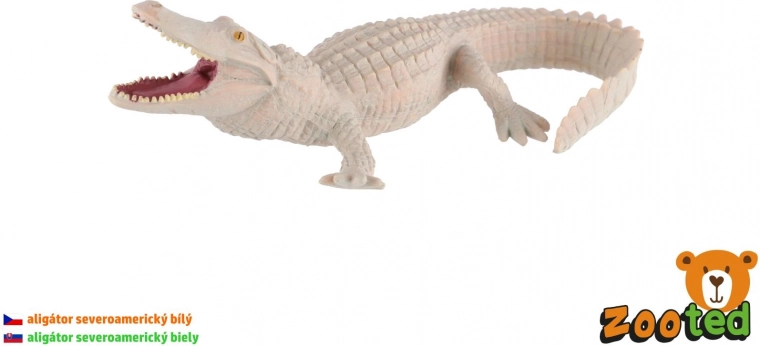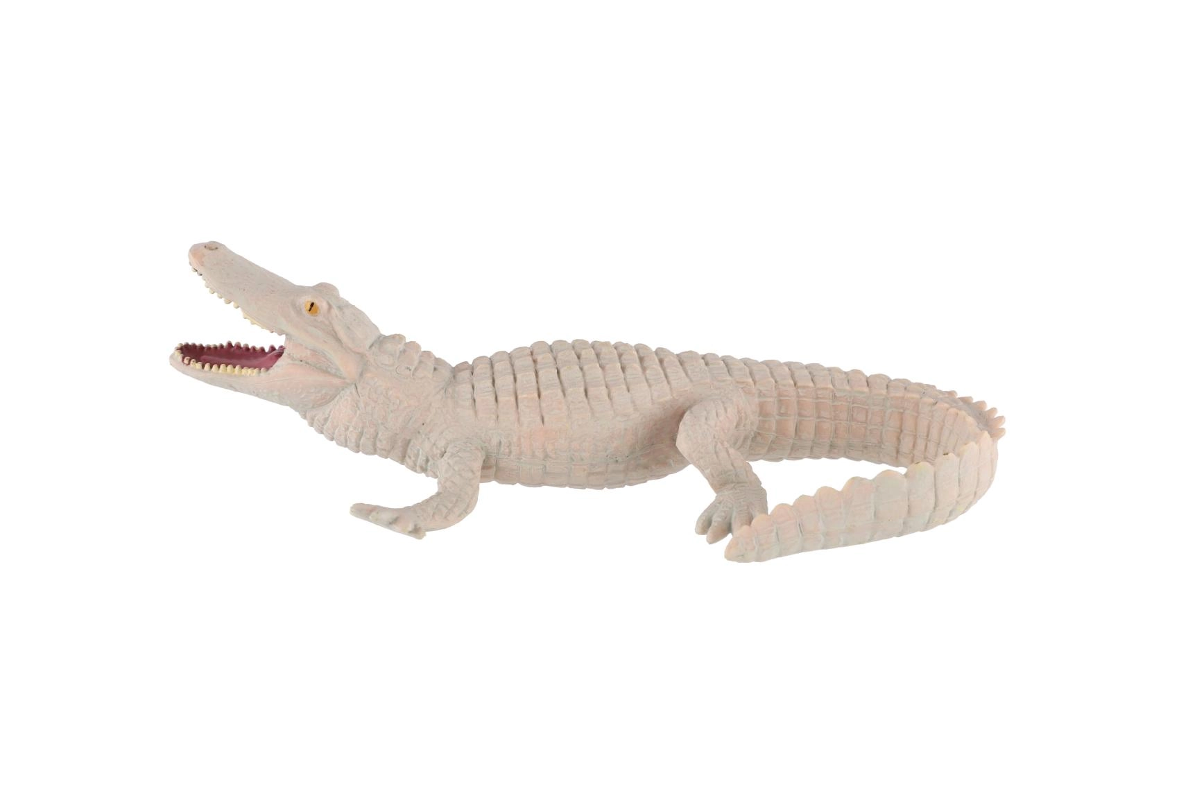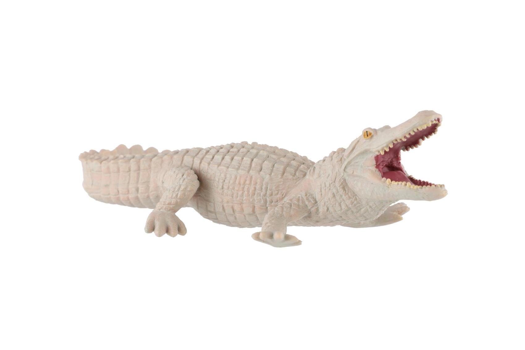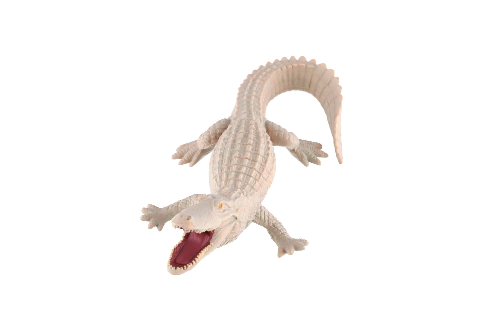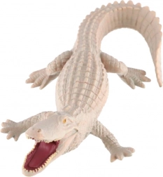 Figurină realistă din plastic a unui aligator alb, lungime 15 cm, care îi va încânta atât pe micii iubitori de animale, cât și pe colecționari. Execuție foarte detaliată, solzi texturați, gură deschisă cu dinți vizibili și plastic rezistent o fac un accesoriu ideal pentru joacă și pentru învățarea despre reptile.