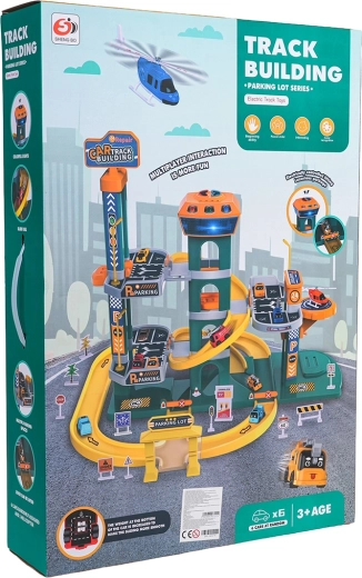 Descoperă parcarea mare cu două etaje pentru copii de la 3 ani, cu efecte luminoase și sonore, lift automat și accesorii bogate. Setul colorat din plastic de calitate, sigur, oferă coborâri în spirală, panou de control cu melodii vesele, sunete de vehicule și butoane care clipesc, precum și 6 mașinuțe și un elicopter pentru ore întregi de joacă creativă.