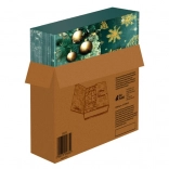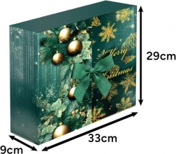 Carton laminat solid în combinație verde-auriu și o fundă textilă îl transformă într-un element decorativ de Crăciun. Arată grozav sub brad sau pe comodă.