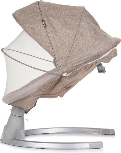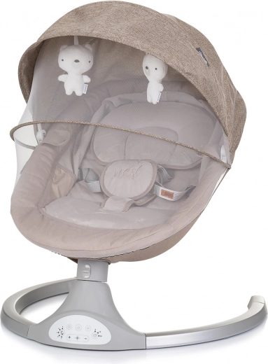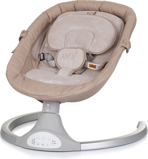 Leagănul electric Nest Macadamia este conceput pentru nou-născuți până la 6 luni (max. 9 kg) și oferă o legănare lină și naturală. Cadrul metalic stabil asigură siguranța, în timp ce căptușeala moale și pernița de susținere oferă confort și sprijin corect pentru cap. Copertina cu jucării din pluș sprijină dezvoltarea senzorială, iar plasa anti-insecte protejează atât în casă, cât și pe terasă.