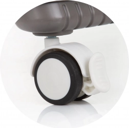 Patru roți pentru mișcare lină prin locuință și o construcție pliabilă pentru economisirea spațiului la depozitare.