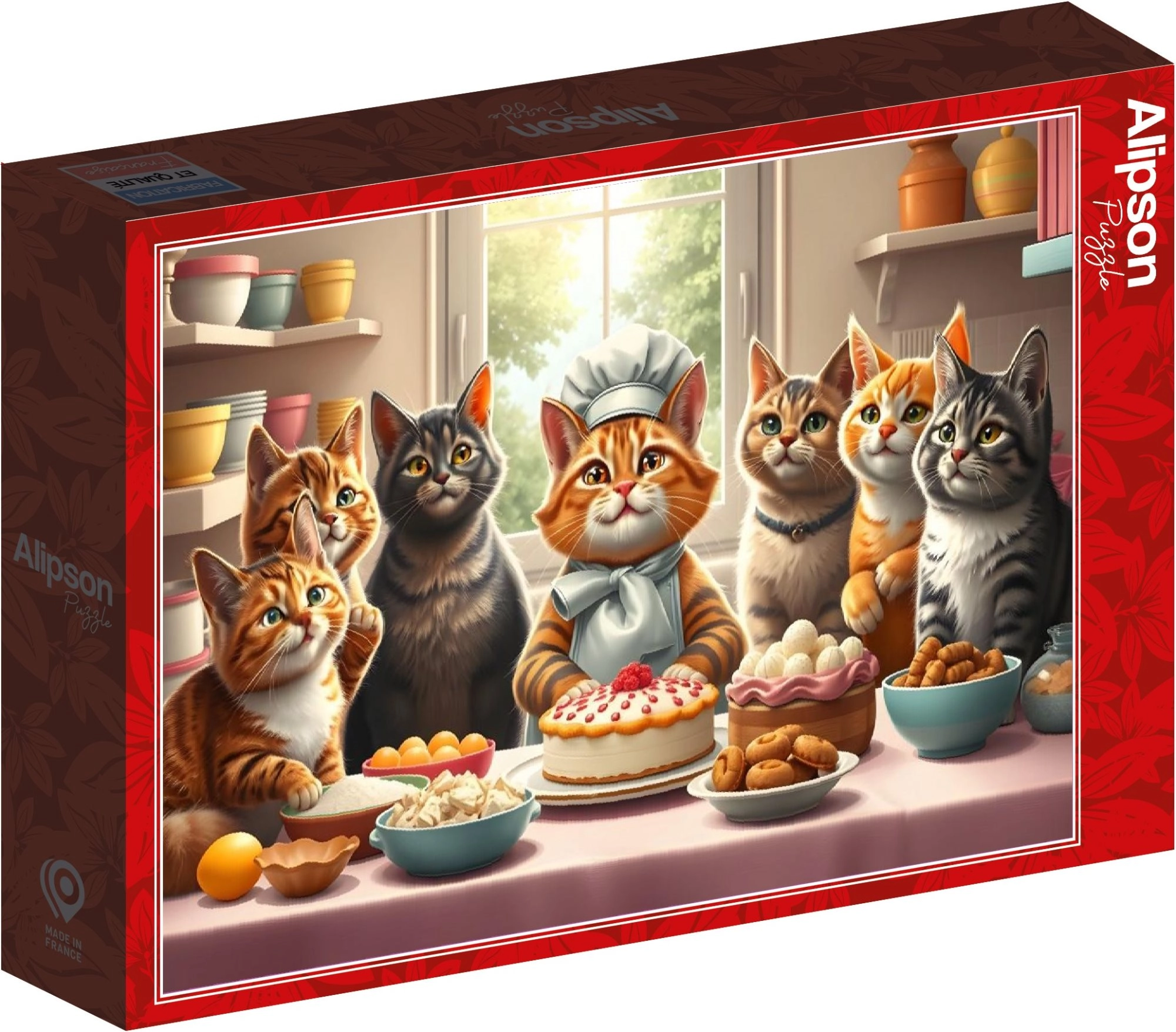 Motivul fermecător al pisicuțelor brutărițe aduce ore de distracție și relaxare. Puzzle-ul cu 1000 de piese este grozav pentru iubitorii de animale, pentru asamblare în familie sau ca decor după înrămare. Datorită formatului standard după asamblare de 69 × 47,8 cm, veți găsi ușor o ramă potrivită.