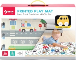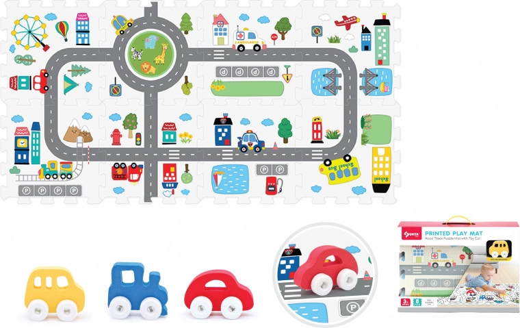 Acest set distractiv susține dezvoltarea motricității, creativității și imaginației. Blocurile moi, de mari dimensiuni, cu motiv urban pot fi aranjate liber în drumuri și scenarii de oraș, pe care poate circula mașinuța inclusă, cu roți libere. Piesele sunt plăcute la atingere, sigure pentru mâinile copiilor și ușor de întreținut.