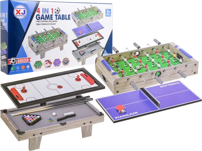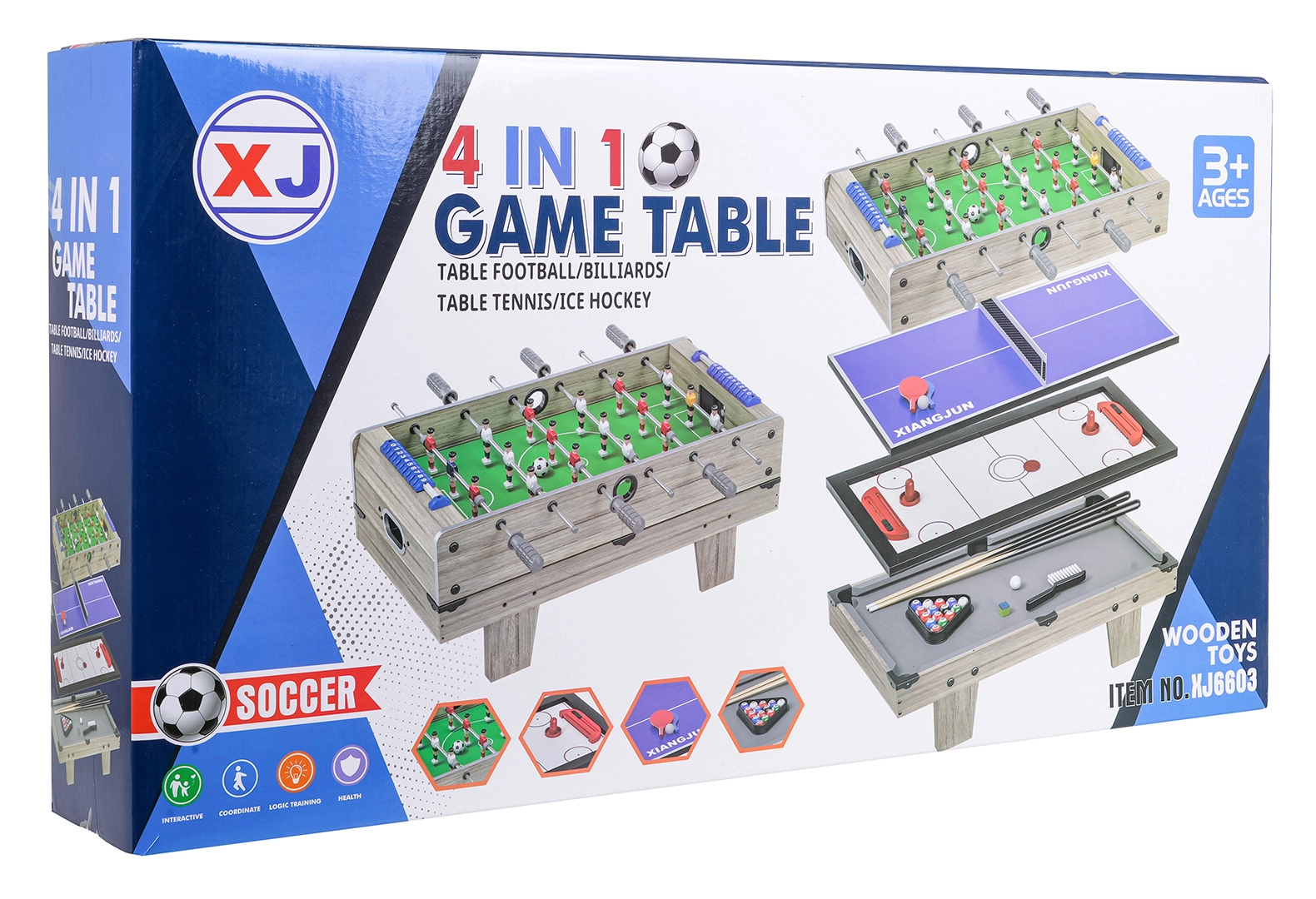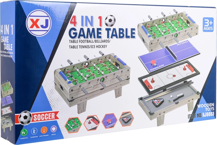 - 4 jocuri în 1: biliard, air hockey, tenis de masă, foosball