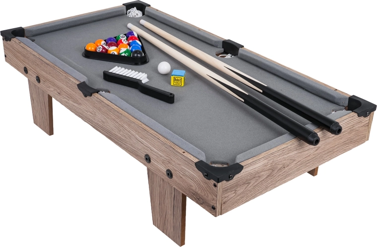 - Accesorii complete: tacuri, bile, pucuri, palete, mingi, plasă, perie etc.
