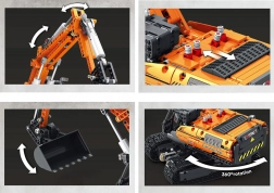 Aceast set de construcție îmbină creativitatea asamblării cu funcții realiste ale utilajelor de construcții. După asamblare, obții un excavator pe șenile robust, cu mecanism detaliat al brațului, cupei și rotație completă a suprastructurii de 360°. Controlul este intuitiv – fie prin telecomandă de 2,4 GHz, fie comod de pe telefon prin aplicația Bluetooth.
