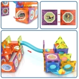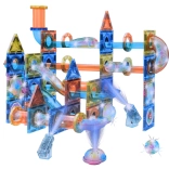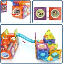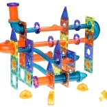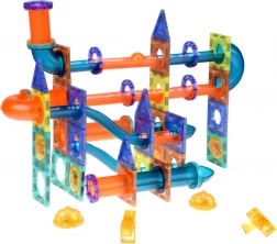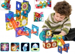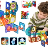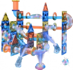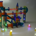 Set creativ de construcție magnetică cu elemente luminoase și tuburi transparente le permite copiilor să construiască piste pentru bile, turnuri și tuneluri. Datorită celor 116 piese cu magneți puternici, asamblarea este ușoară și intuitivă, bilele luminoase și proiectoarele oferind un spectacol vizual impresionant mai ales în semiîntuneric. Excelent pentru învățare STEM, dezvoltarea logicii și a motricității fine.