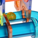 Combinația de tuburi drepte și curbate, ferestre și tuneluri permite proiectarea unor trasee originale. Datorită pieselor transparente, deplasarea bilelor este vizibilă excelent.
