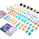 - 24× perete pătrat cu diverse deschideri, 16× suporturi circulare, 21× tub lat, 4× tub îngust, 2× tub cu formă neregulată, 4× triunghi (permite construirea de turnuri), 4× curbă, 7× curbă îngustă, 18× fereastră, 4× bilă, 4× bilă luminoasă, 2× proiector mobil (lumină), 3× lumină tip cupolă, 2× lumină octogonală, autocolante, ghid ilustrat