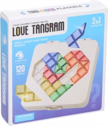Tangram puzzle inimă 12 cm este un joc inteligent și distractiv pentru întreaga familie. Sarcina jucătorului este, urmând modelul ilustrat, să așeze corect piesele colorate pe tabla de joc și să completeze cât mai rapid părțile lipsă. Cu fiecare nivel superior cresc piesele lipsă, astfel încât crește și dificultatea și tensiunea jocului.