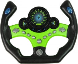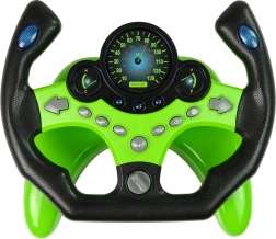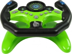 Volan interactiv pentru copii cu efecte luminoase, sunete realiste și set de chei cu telecomandă oferă o simulare distractivă a condusului. Copiii își antrenează coordonarea mână–ochi, își dezvoltă creativitatea și se familiarizează cu funcțiile de bază ale unei mașini. Design verde–negru, mânere ergonomice și ventuze pentru fixare stabilă pe masă asigură un joc confortabil.
