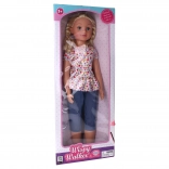 Păpușa drăguță care merge, îmbrăcată în rochiță înflorată, va încânta orice copil. Datorită înălțimii de 70 cm pare realistă, iar ochii care clipesc și funcția de mers oferă ore întregi de distracție creativă și dezvoltare a imaginației.