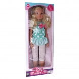 O păpușă drăgălașă care merge, cu o fundiță elegantă, va bucura orice copil. Datorită înălțimii de 70 cm are un aspect realist și are ochi clipitori, care adaugă jocului o notă de viață. O alegere excelentă pentru distracție jucăușă și dezvoltarea imaginației.
