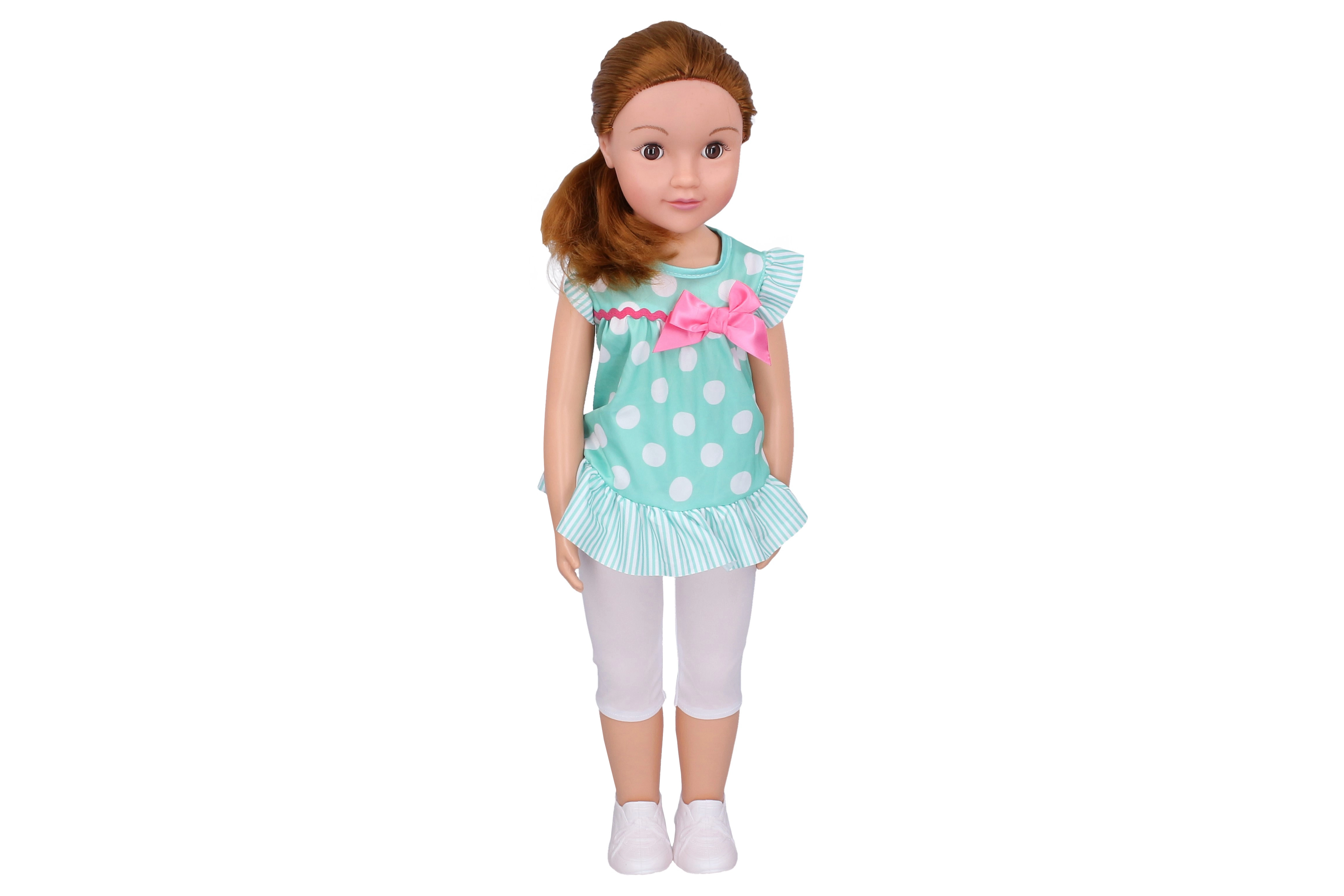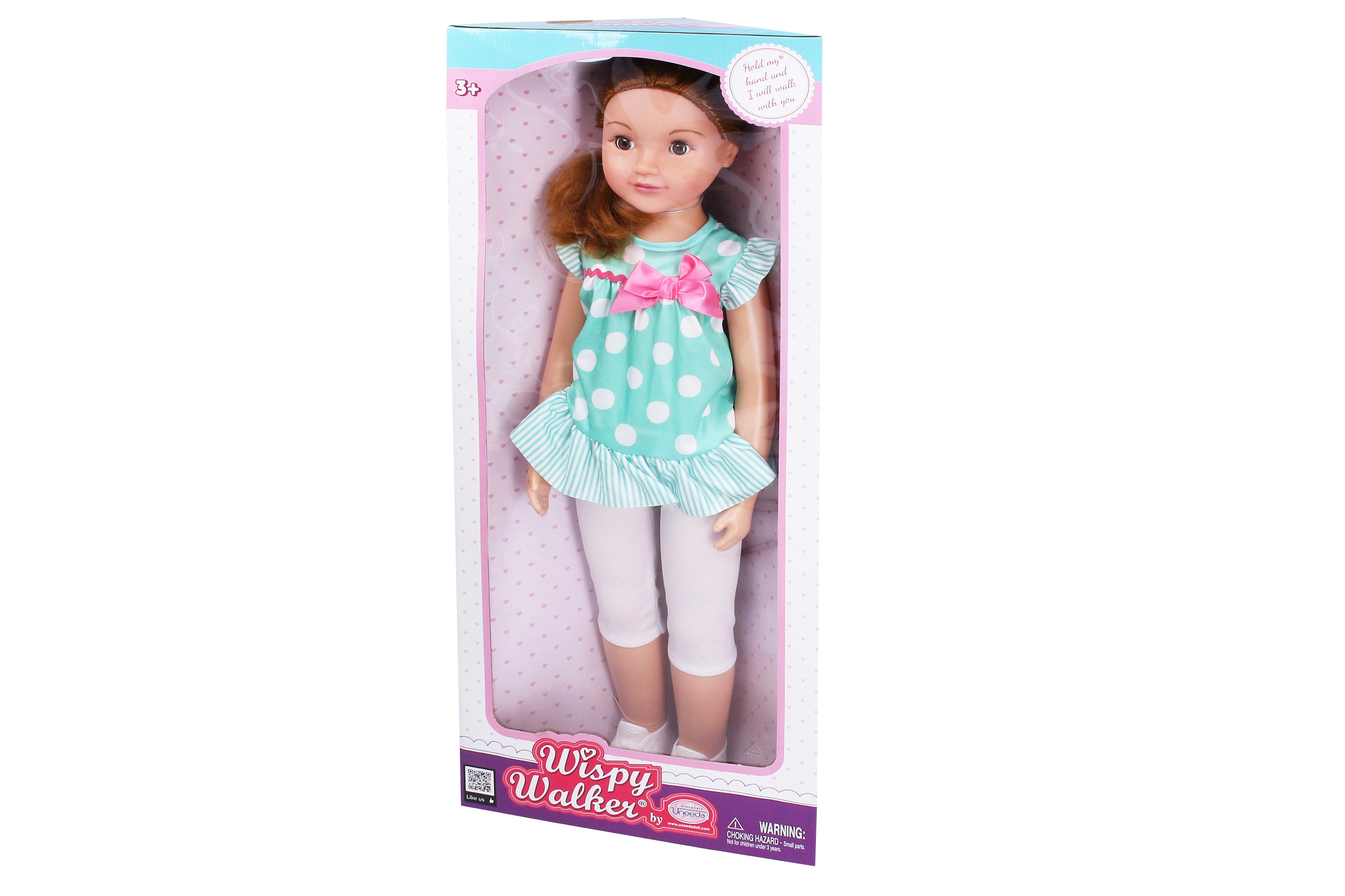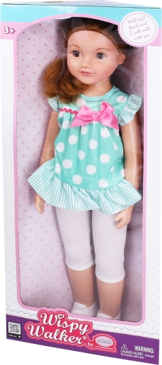Păpușa mergătoare drăgălașă, cu o fundiță delicată, va încânta orice copil. Are ochi care clipesc, o înălțime impresionantă de 70 cm și se poate mișca atunci când este condusă de mână – un companion ideal pentru joacă și dezvoltarea imaginației.
