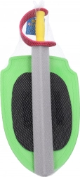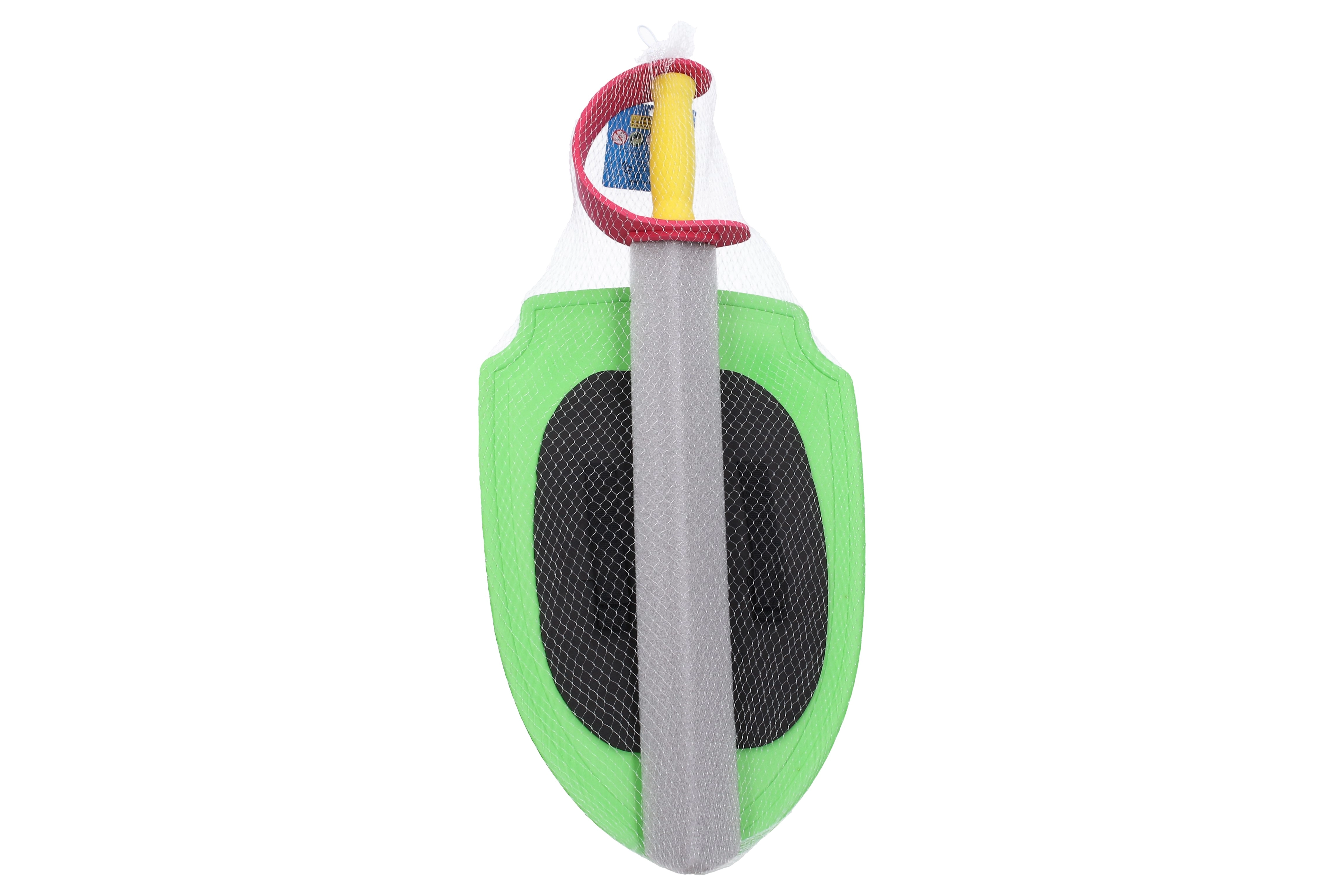 Set distractiv pentru micii cavaleri: sabie din spumă și scut în culoare verde pentru dueluri sigure și jocuri de costumație. Material ușor, joacă în siguranță și dimensiune ideală pentru copii asigură multă acțiune atât acasă, cât și în aer liber.