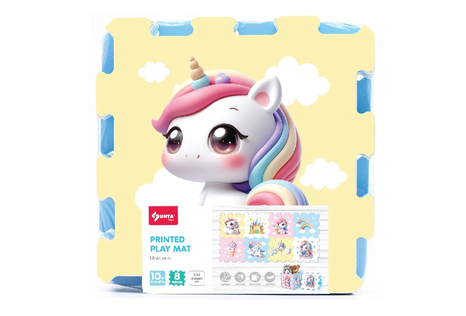Aceste blocuri moi din spumă, cu îndrăgitul motiv unicorn, stimulează creativitatea și dezvoltarea motricității fine. Elementele pot fi asamblate în diverse forme, pot fi folosite ca suprafață de joacă sigură sau ca decorațiune pentru camera copilului. Materialul este plăcut la atingere și ușor de întreținut.